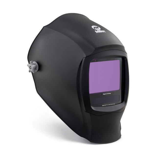 The Miller Digital Infinity auto-darkening welding helmet features exclusive ClearLight™ 2.0 Lens technology, delivering enhanced clarity for a brighter, more realistic weld view. Its expansive 112 x 78 mm viewing area provides a wider perspective of the weld zone, while the redesigned headgear ensures a secure, adjustable fit for unsurpassed all-day comfort. Perfect for MIG, Stick, TIG welding and plasma cutting, the Digital Infinity is packed with exclusive Miller technologies including HDV, X-Mode™, ClearLight™ 2.0 and InfoTrack™ 2.0 – all working together to deliver an enhanced welding experience.